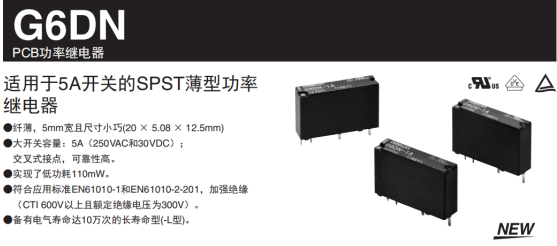 G6DN系列繼電器典型應用:PLC輸出靠繼電器觸點控制,與傳統的工業繼電器不同。可用于自動化設備內部PCB板上,實現高電流切換5A(AC250V\DC30V)及交叉雙觸點實現高可靠性。以下是詳細性能: