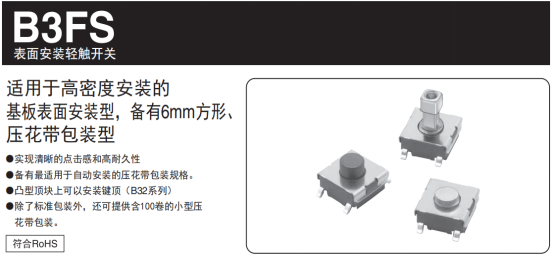 這類美容儀器產(chǎn)品都會(huì)有按鍵,當(dāng)中就有應(yīng)用到歐姆龍輕觸開關(guān)型號(hào):B3FS-1002P,實(shí)現(xiàn)清晰點(diǎn)擊感和耐久性;我們可以看下具體參數(shù):