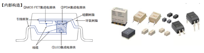具有超小型,高壽命,低驅(qū)動電流,低導(dǎo)通電阻的特點(diǎn);由3個集成電路塊構(gòu)成:①LED集成電路塊(發(fā)光二極管);②PDA集成電路塊(發(fā)光二極管陣列);③MOS FET集成電路塊,多種端子類型,可負(fù)載電壓20V~600V。