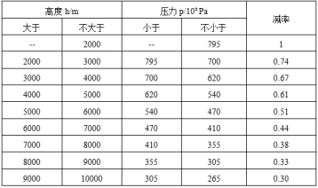 在空氣稀薄的高空,使電暈產生的趨勢增加,(1)影響抗電強度的下降;(2)真空釋氣、塑料的氣體污染;使電路產生短路故障。因此在高空使用連接器時,必須降低工作電壓使用。在低氣壓下推薦的電壓降額系數見下表。