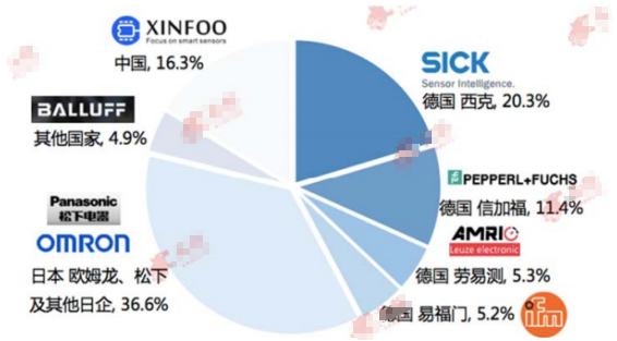 中國光電傳感器企業主要分布在長江三角洲地區,以上海、無錫、南京為中心,形成了光電、熱敏、圖像、溫度等較為完備的傳感器生產和產業配套體系,產品以低端傳感器為主。中國是光電傳感器制造大國,本土企業光電傳感器核心技術掌握程度低。本土企業以作坊式和 OEM 生產為主要生產模式,生產產品多為中低端產品。中低端產品生產企業以成本為主要優勢,導致中低端產品價格競爭激烈??鐕髽I則掌握核心制造技術,加之檢測工藝嚴謹,產品質量高于本土產品。激光紅外傳感器等高端傳感器的核心技術的掌握賦予了德國和日本企業高競爭力,導致高端傳感器市場份額主要由德國和日本企業占據.(如圖2)