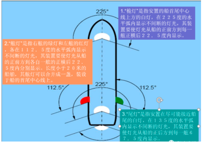 2、“舷燈”是指右舷的綠燈和左舷的紅燈。