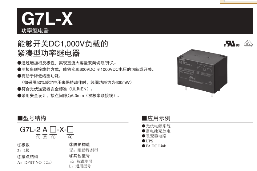 這款可應用于光伏電源系統的G7L-X功率繼電器,還可替代傳統繼電器為光伏行業以外的各種行業