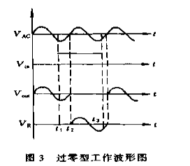 由于觸發(fā)信號方式不同,AC—SSR還分為過零型觸發(fā)(Z型)和非過零型或隨機(jī)型(P型)觸發(fā)兩種,如圖為其工作波形圖。可見過零型和非過零型之間的區(qū)別主要在于負(fù)載交流電流導(dǎo)通的條件。過零型在輸入信號Vin施加的t1時刻,由于此時電源電壓處在非過零區(qū),其輸出端不導(dǎo)通,只有當(dāng)電源電壓到達(dá)過零區(qū)t2時,輸出端負(fù)載中才有電流流過。而非過零型在輸入信號Vin施加的t1時刻,不管電源電壓處在什么狀態(tài),負(fù)載立刻導(dǎo)通。這兩種類型的固體繼電器關(guān)斷條件則相同。