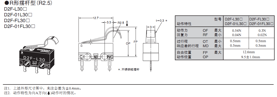端子品種豐富的歐姆龍超級小型基本開關