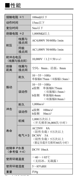 絕緣距離8mm、線圈-接點間耐沖擊電壓高達10kV。