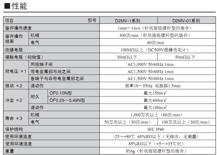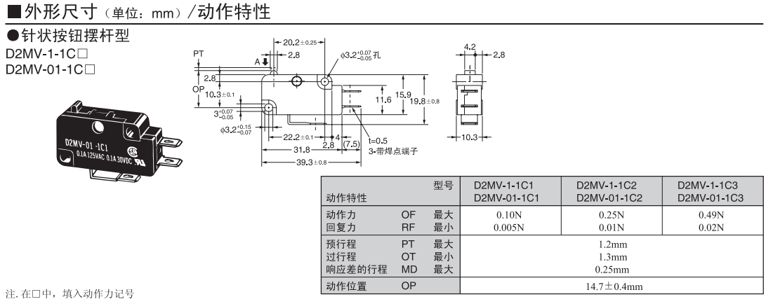 D2MV 小型基本開關
