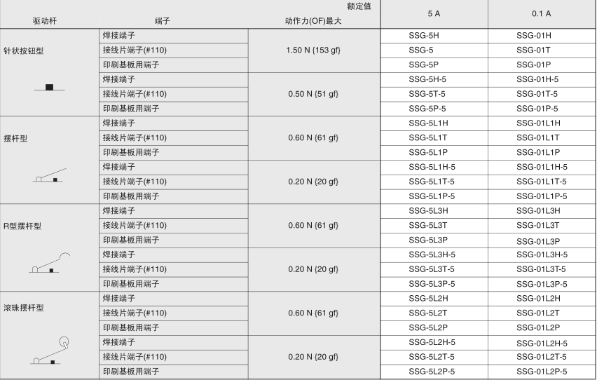 歐姆龍微動開關,SSG-5H,歐姆龍微動開關SSG