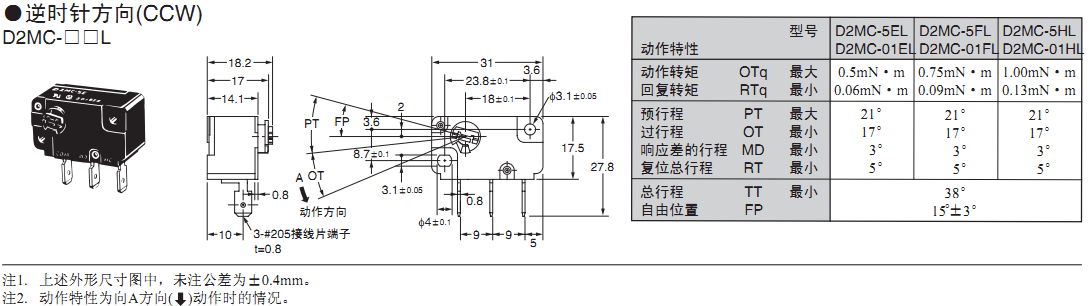 D2MC 輕轉(zhuǎn)矩基本開關(guān)