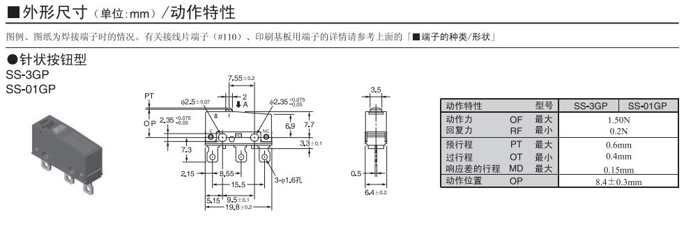 歐姆龍微動開關, SS-3GP,歐姆龍微動開關SS