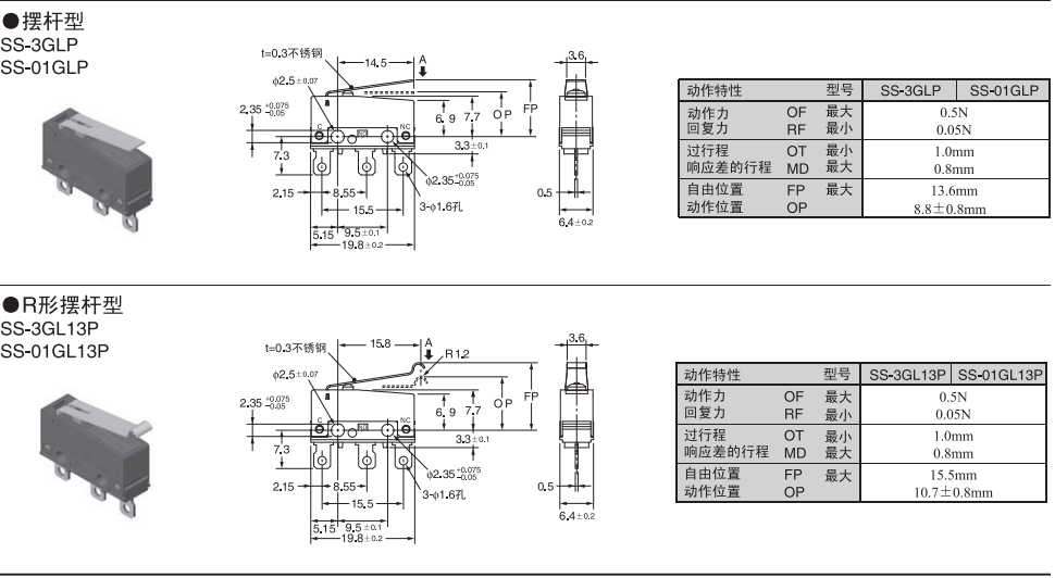 歐姆龍微動開關, SS-01GLP,歐姆龍微動開關SS
