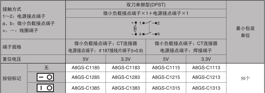 備有可同時ON/OFF微小負載領域、高負載領域的2極規格種類。