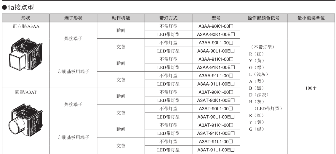 • A3AA-90K1-00R方形按鈕開關