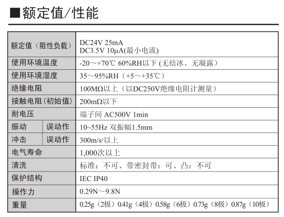 接點部分為鍍金雙接點,通過動作的自清潔構造,確保了高可靠性。