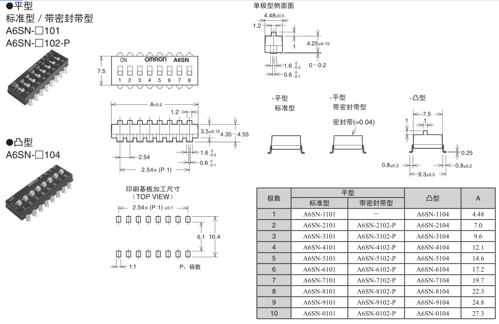 A6SN-2102-P滑動型撥動開關