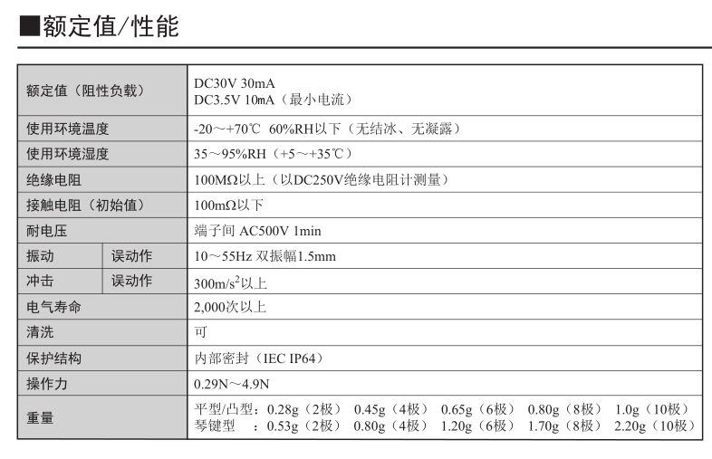 相當(dāng)于密封構(gòu)造IP64(IEC-60529)防止焊劑浸入,即使在塵埃較多或有水的地方使用也 能確保高接觸可靠性。