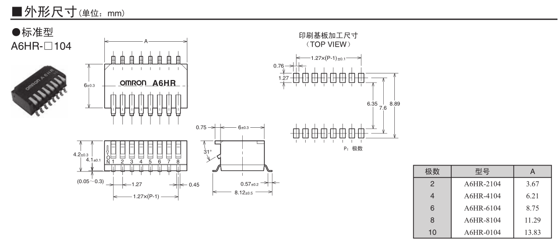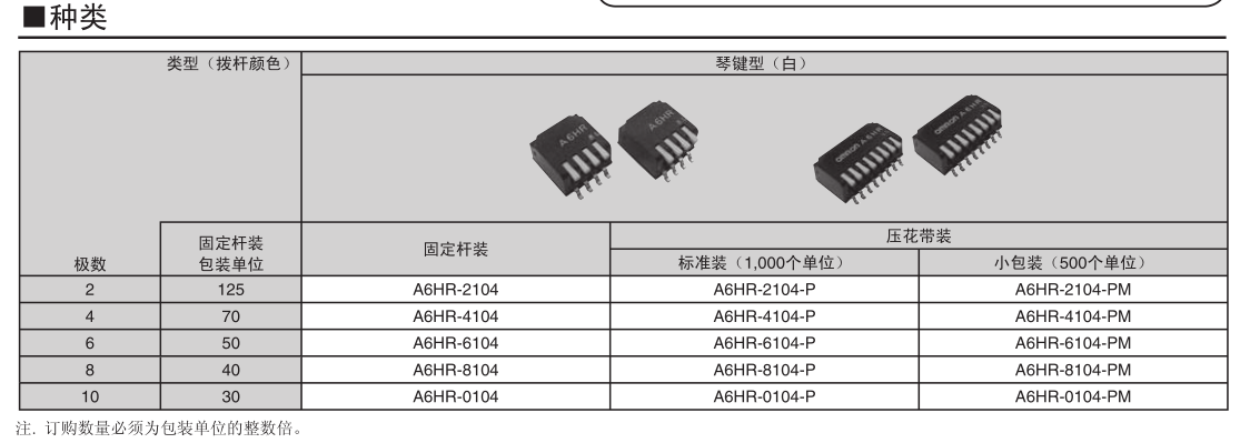 • A6HR-2104琴鍵型DIP開關