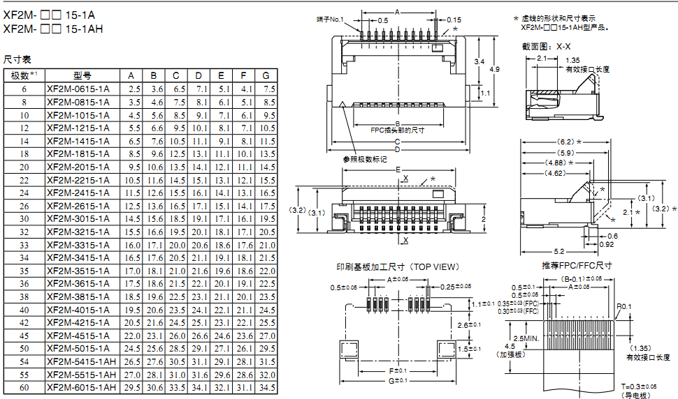 歐姆龍FPC連接器,XF2M-0615-1A,歐姆龍FPC連接器XF2M