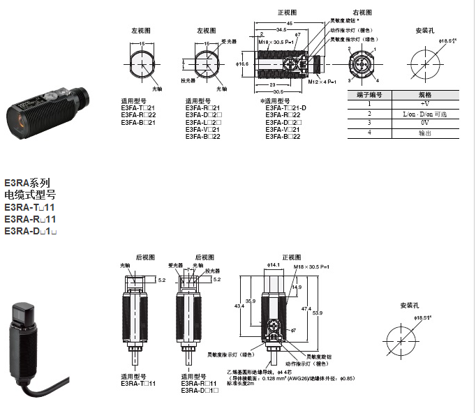 歐姆龍E3FA/E3RA/E3FB小型圓柱型光電傳感器安裝簡(jiǎn)單,設(shè)定操作簡(jiǎn)便直觀。大而結(jié)實(shí)的旋鈕方便安裝人員對(duì)傳感器進(jìn)行調(diào)節(jié),明亮的大功率紅色LED清晰可見(jiàn),即使在較長(zhǎng)距離下也便于進(jìn)行光軸對(duì)齊操作。傳感器的LED狀態(tài)指示燈同樣具有較長(zhǎng)的可見(jiàn)距離與較大的可見(jiàn)角度。