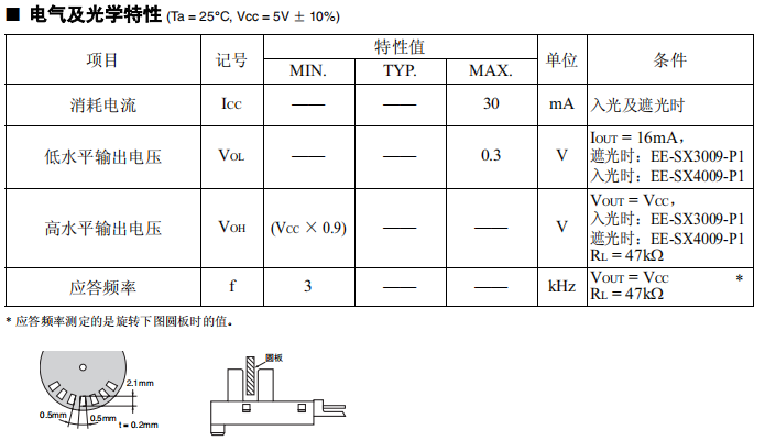 光電IC輸出(分為遮光時ON(EE-SX3009-P1)/入光時ON(EE-SX4009-P1)2種類型)