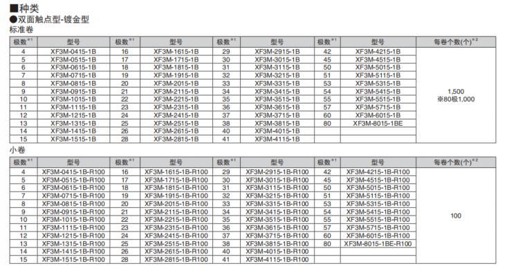 接點構造備有雙面觸點型和上觸點型兩種。 (上接點型只有0.5mm間距)