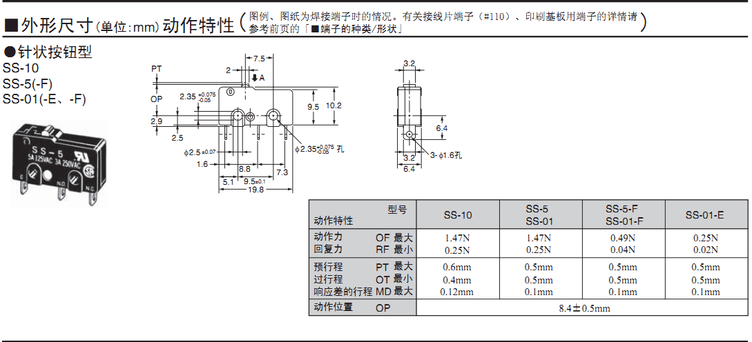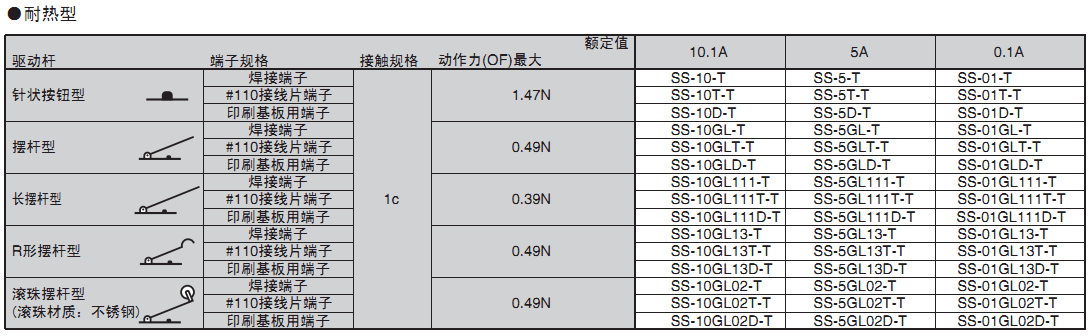備有0.1A~10.1A型的各個品種,產品規格齊全,是歐姆龍暢銷的微動開關。
