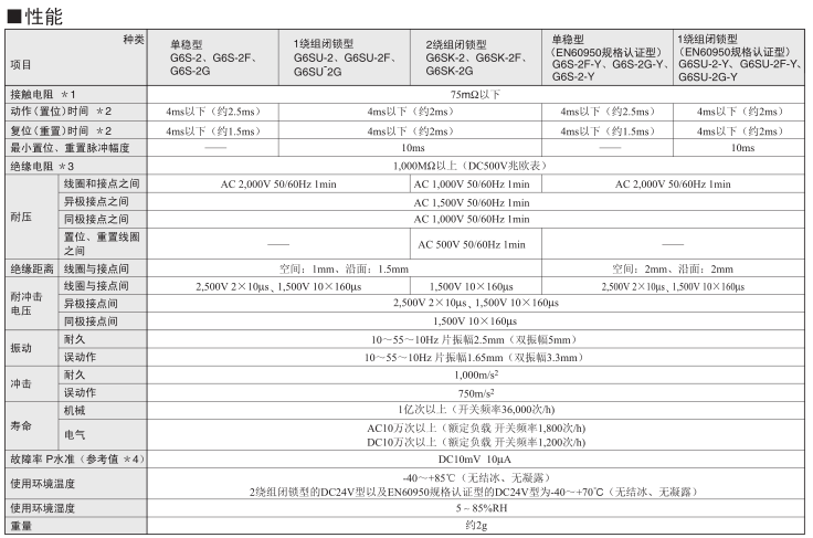 線圈接點間耐高壓2,000V AC、高度耐沖擊電壓2,500V 2×10μs(Telcordia標準)。