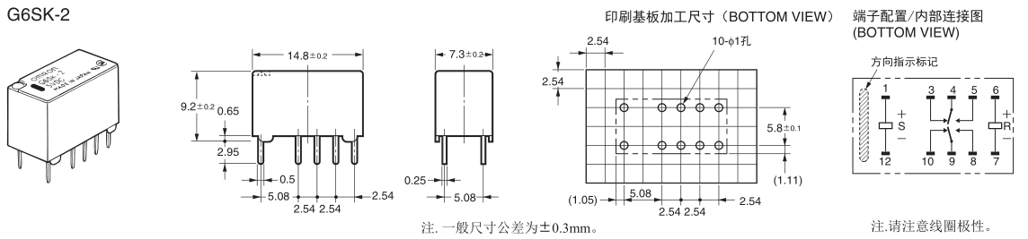 歐姆龍信號繼電器,G6SK-2 DC5V,小型信號繼電器