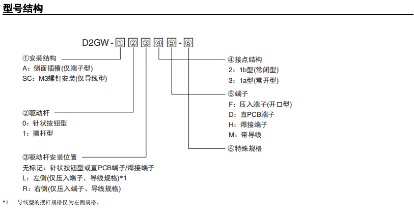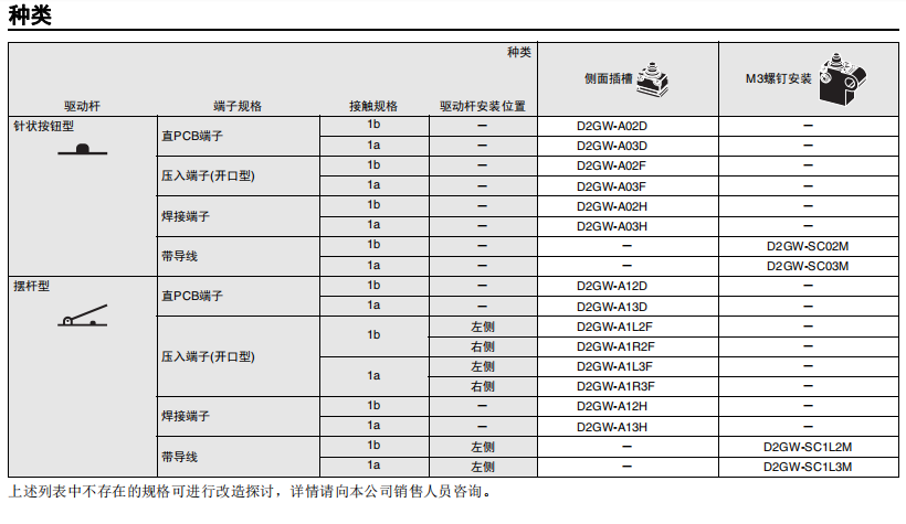 超小型微動開關D2GW系列