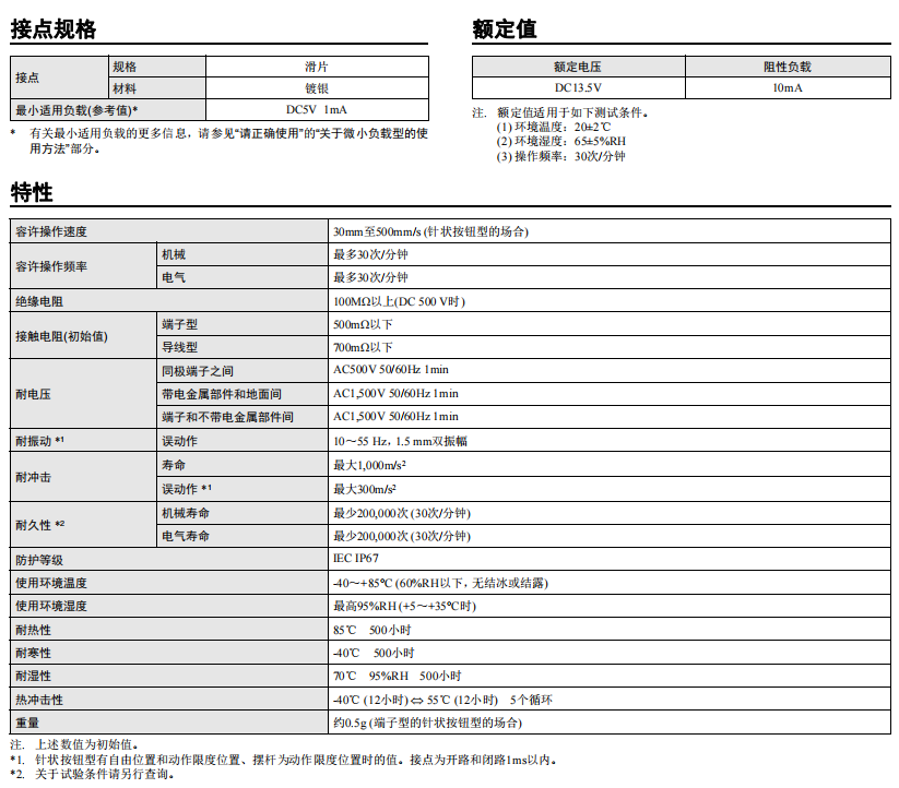 • 高接觸可靠性適用于微小負載