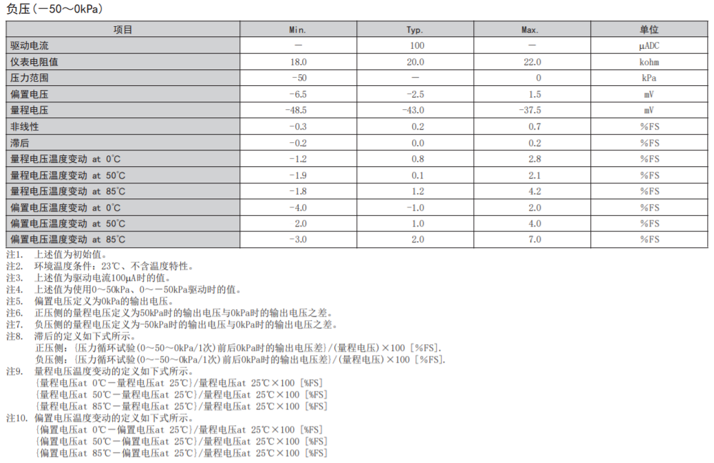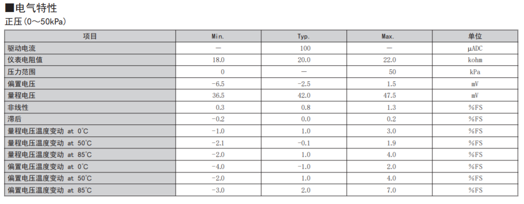 • 在-50kPa~+50kPa的壓力范圍內具有優異的電氣特性。