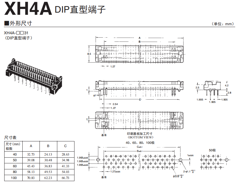 XH4A系列 半間距連接器(低高度重疊連接用)