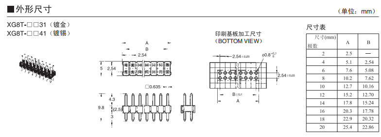 2.54mm欄的高密度安裝縱橫向均可使用。