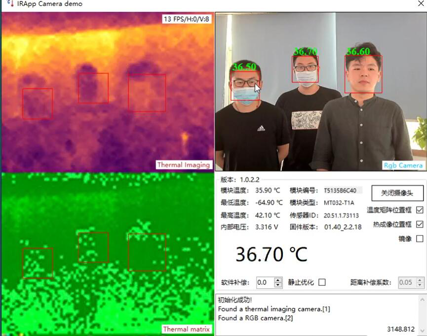 在人臉面板機上獨立安裝測溫模塊,實現人臉識別多人及快速測溫。