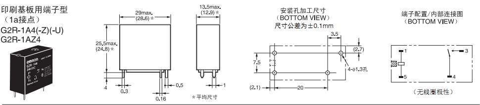 功率繼電器G2R-1A4 DC24V,歐姆龍G2R-1A4 DC24V,塑料密封型繼電器G2R-1A4